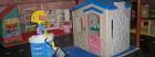 I have a second space set up for gross motor and imaginative play with pretend roads to drive little cars and bikes. This area is set up with dramatic play centres, tent, slide, basketball and hockey centres.