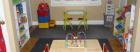 The child care section is located in a separate part of the house with a bright play area with a walk out to the backyard.