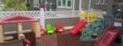 We have fence playground on our front yard and Our playground is made with rubber mulch Surface for children safety.