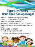 My name is Larissa I am the owner/operator of Tiger Lily Family Child Care, a licensed family child care in Prince George B.C. I have been in operation since September 2013.