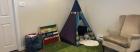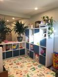 - Large sunny play room with a play structure