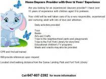 Are you looking for an experienced daycare provider? I have over 15 years of experience with children of aged 0 to preteens.