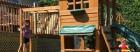 -lots of outdoor play in a fully fenced yard with a large play structure