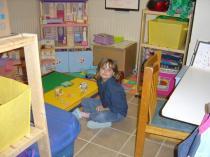 Will have the play room finished in hopefull by march, for now is in the living room downstairs, of a residence, privote bedroom for nap times, and full kitchen for lunch and snacks.25/day with reciepts, and posiblity to have government funding to compensate contact me for more details!
