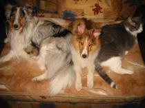 My home has a very calm, lovable sheltie named Ozzie and Sydney an older tabby cat who loves everyone.
