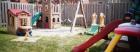 Back yard with climbers, fort, swings set, playhouse, ride-on toys and more!